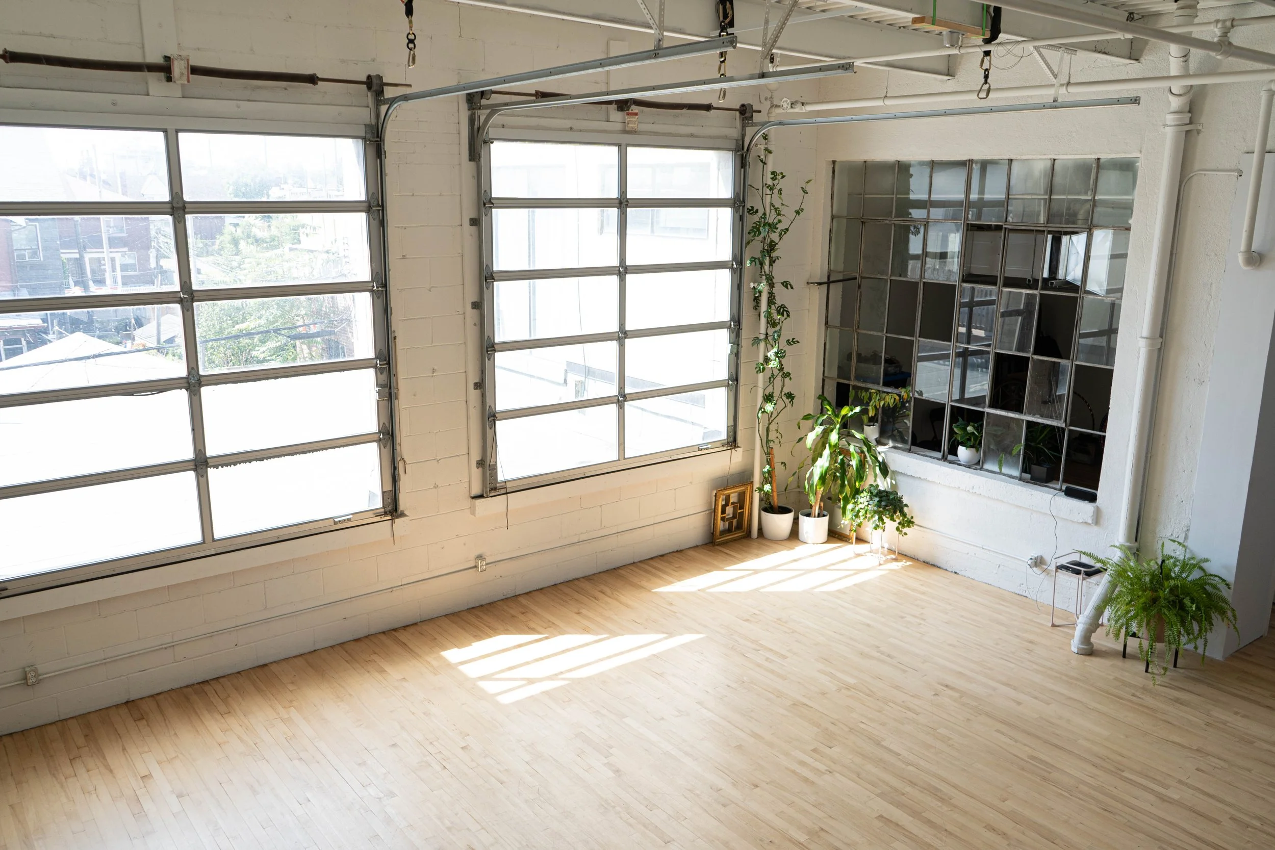Gorgeous west-facing studio with two large garage-style industrial doors that open out to the roof.
